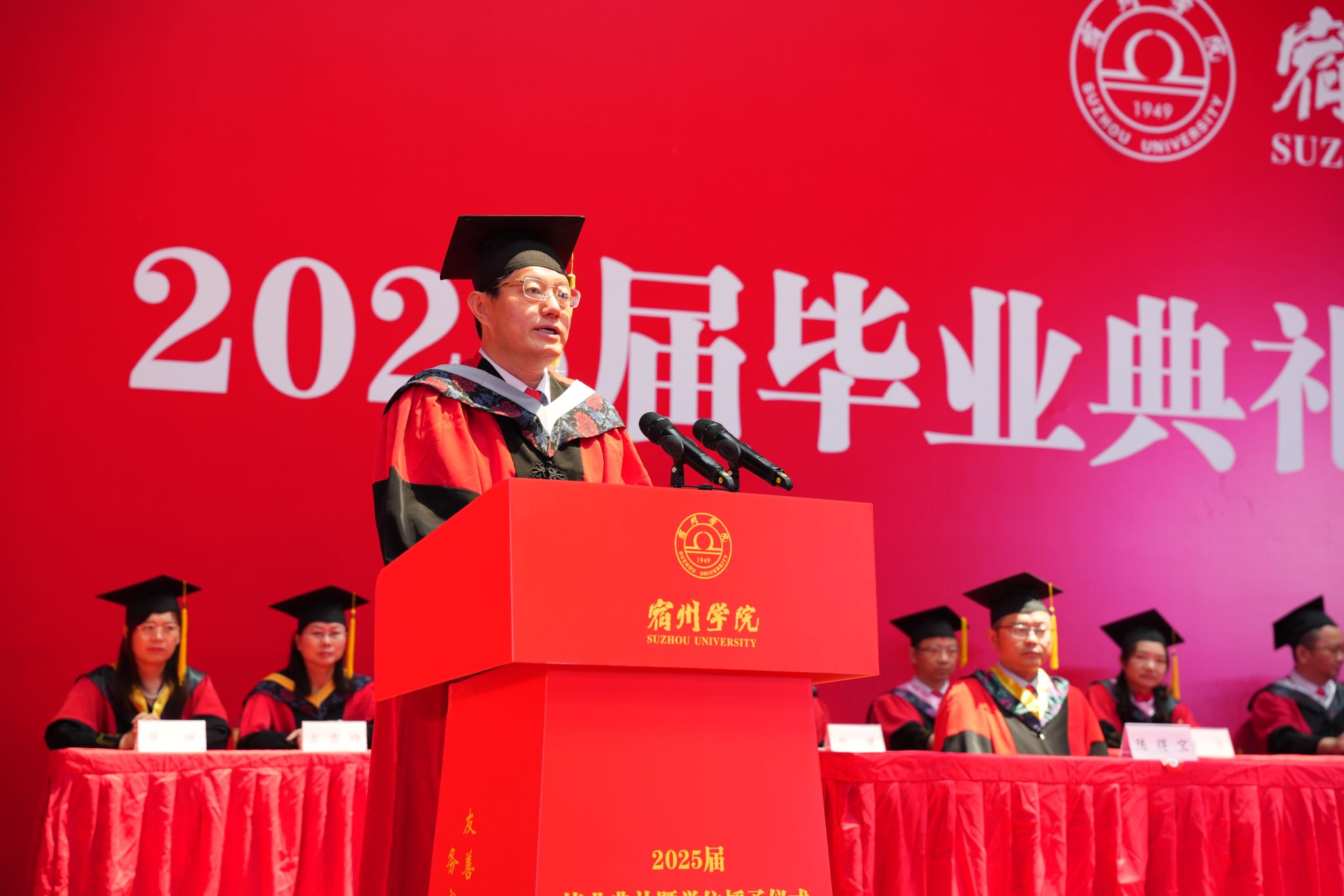 校党委书记李红代表学校向2025届毕业生表示最诚挚的祝贺,殷切叮嘱毕业生要涵养家国情怀,坚持实干担当,在强国建设中勇毅前行、建功立业;要永葆学习热情,坚持终身学习,在时代大潮中勇攀高峰、超越自我;要始终心怀感恩,坚持开放包容,在奋进征程中携手同行、共创未来。