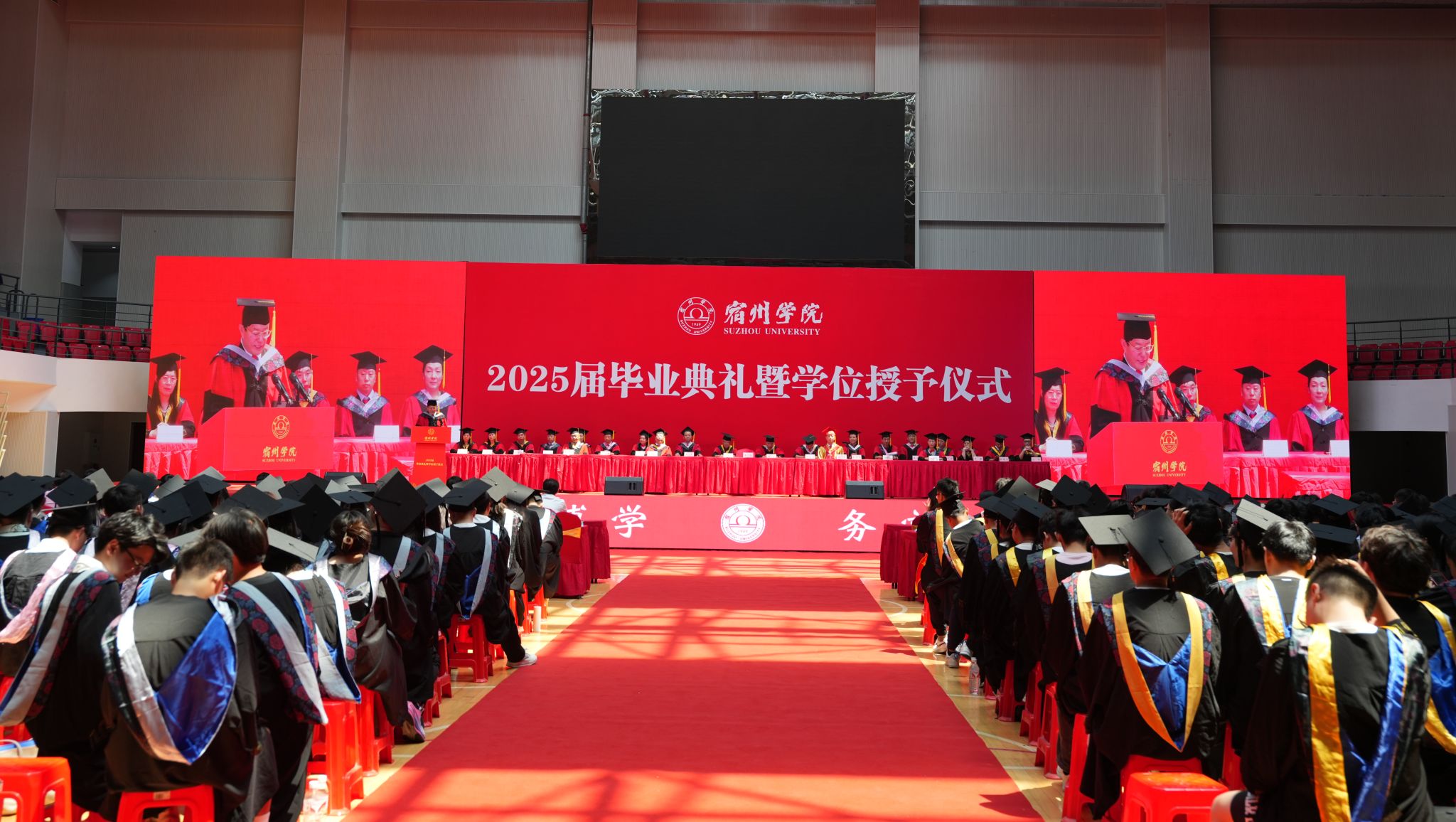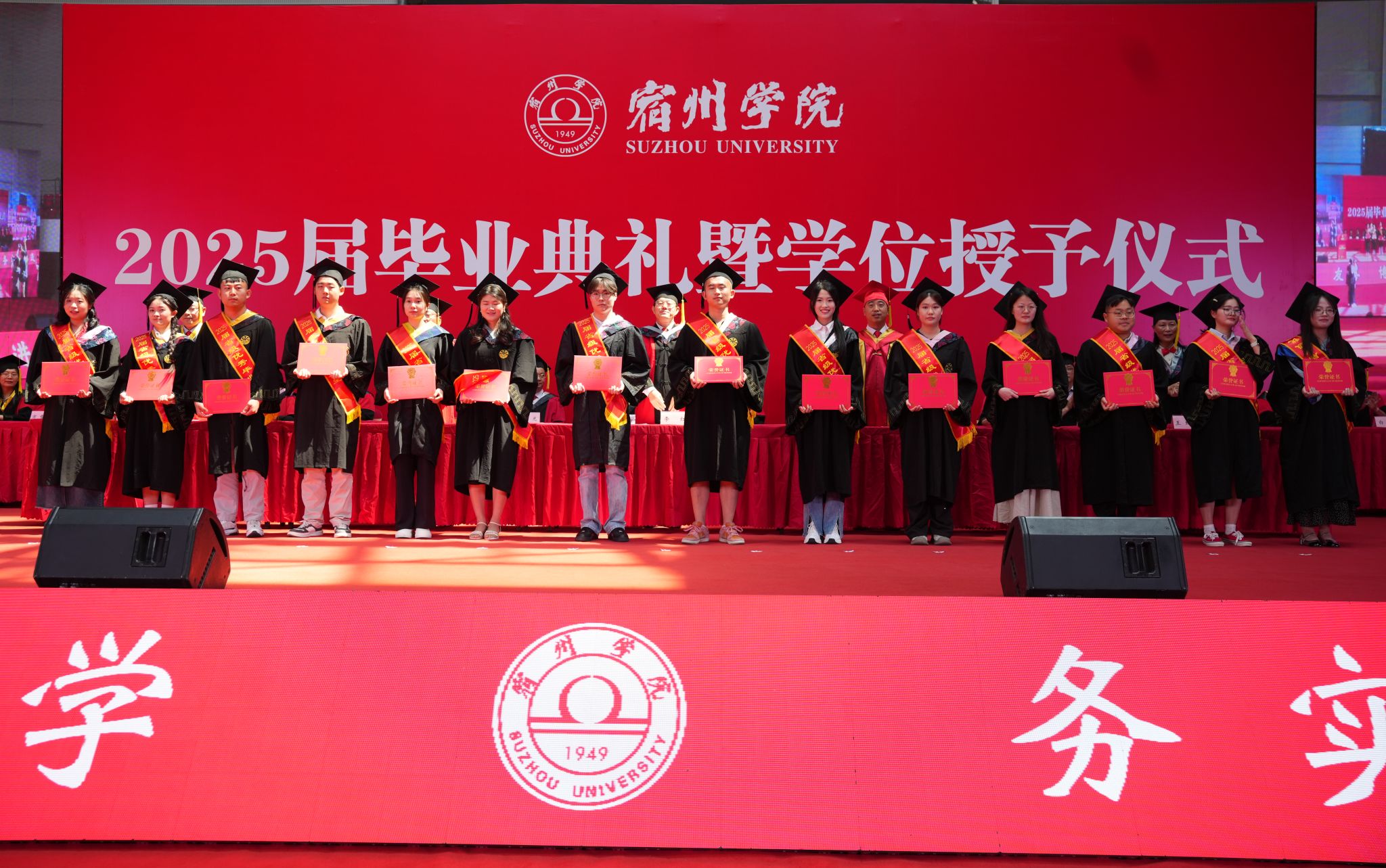6月17日上午,宿州学院2025届毕业典礼暨学位授予仪式在教育园区校区体育馆举行。我校2025届成人高等教育毕业生代表参加学位授予仪式。